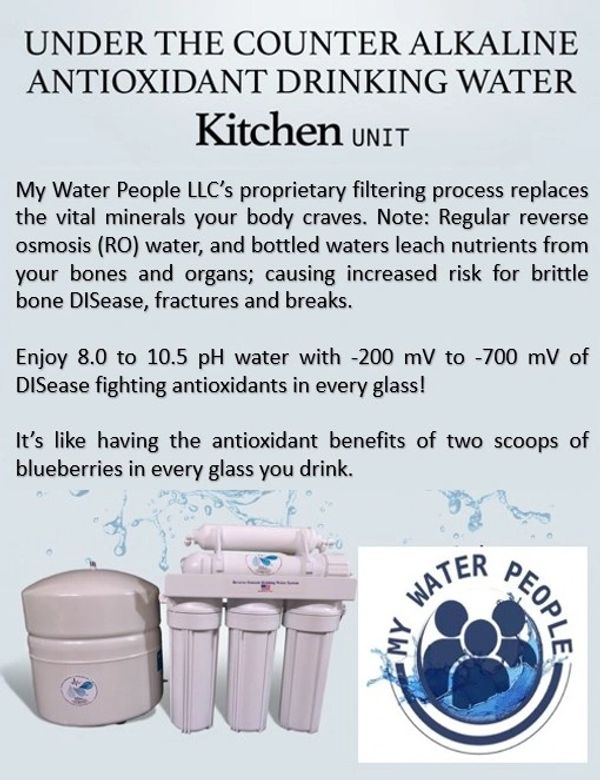 Doctor of Natural HealthClean, re-mineralized, alkaline, antioxidant water is the single most important dietary change you can make for your overall health.We prove the difference for our customers by providing two FREE Microscopic Blood Health tests when you first get your water equipment and again 4-5 months later. The difference in your cells is outstanding. Healthy Blood = Healthy People!