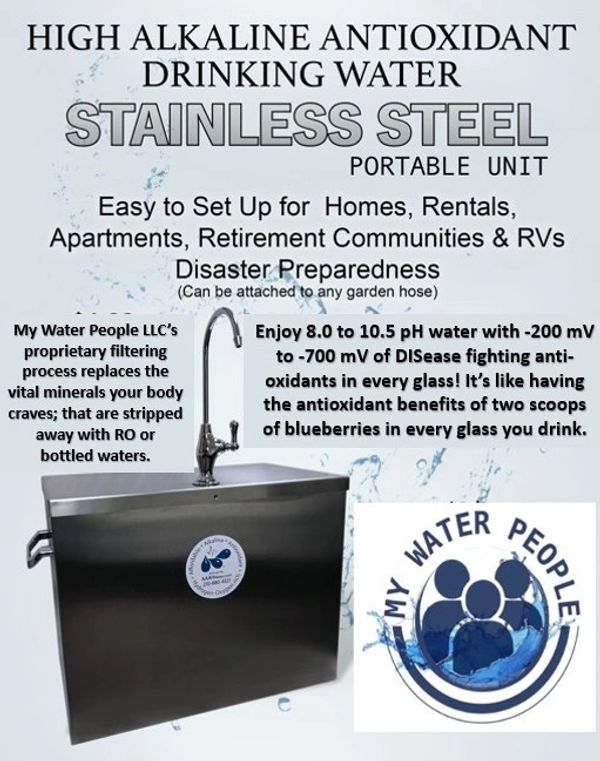Make your own alkaline & antioxidant rich mineral drinking water from your kitchen tap. Our portable system from a garden hose. (Great for RVs, Hunting, Camping).